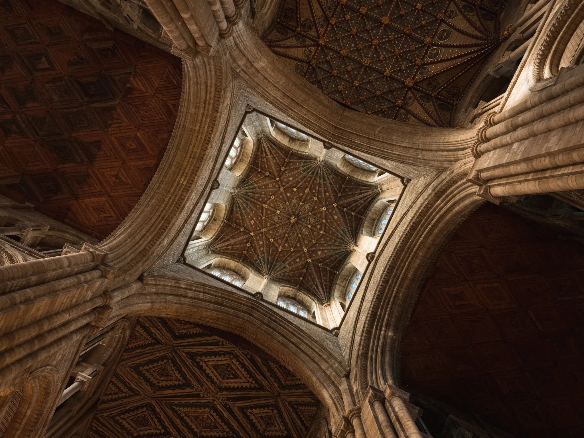 The last time we visited Peterborough one of the clergy encouraged me to lie down for the best view of the crossing – in his words, the best view in the house. The strategy worked well last time and the building was very quiet so I did the same again, this time shooting the architecture on a diagonal angle for more drama.