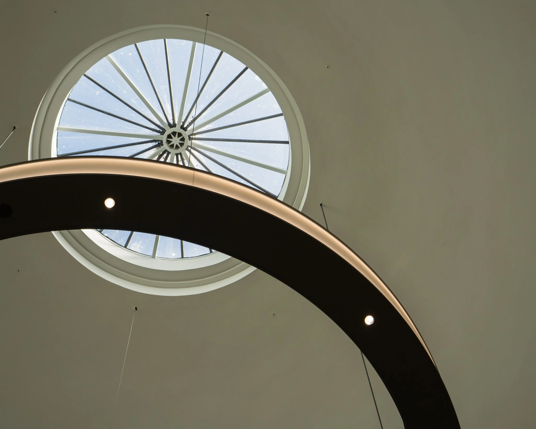 In the front part of the building I found this wonderful space, with a huge light which seemed like a UFO!