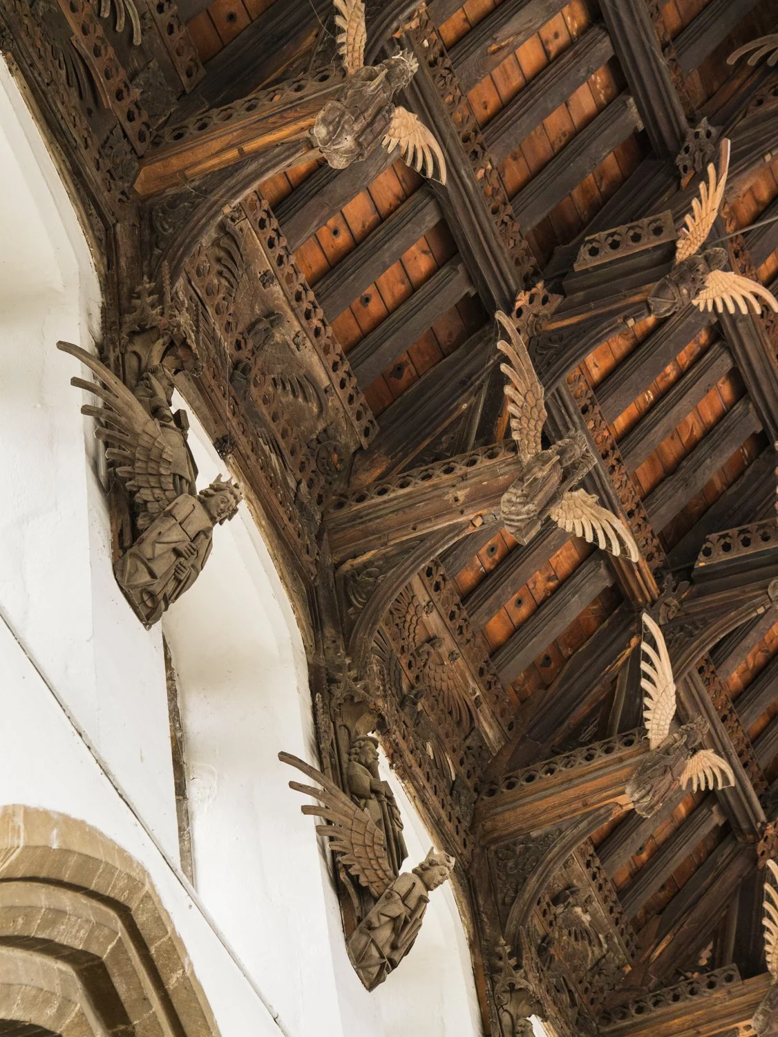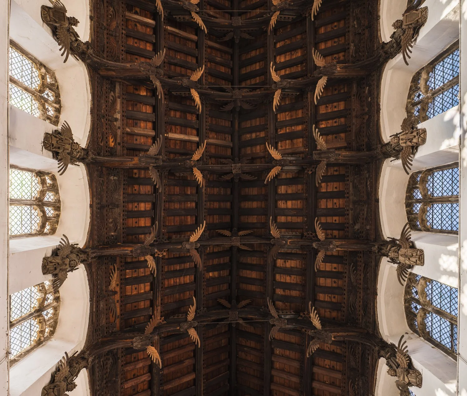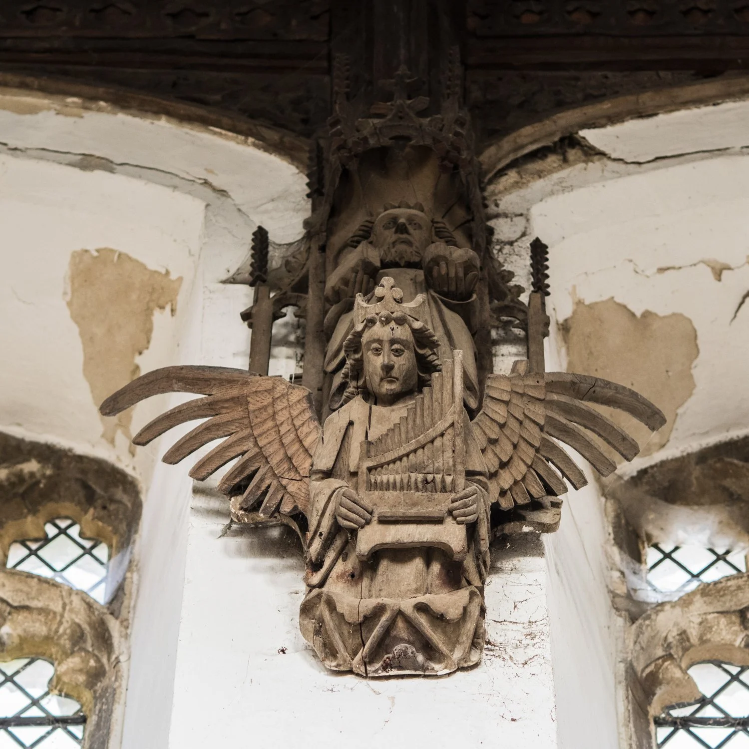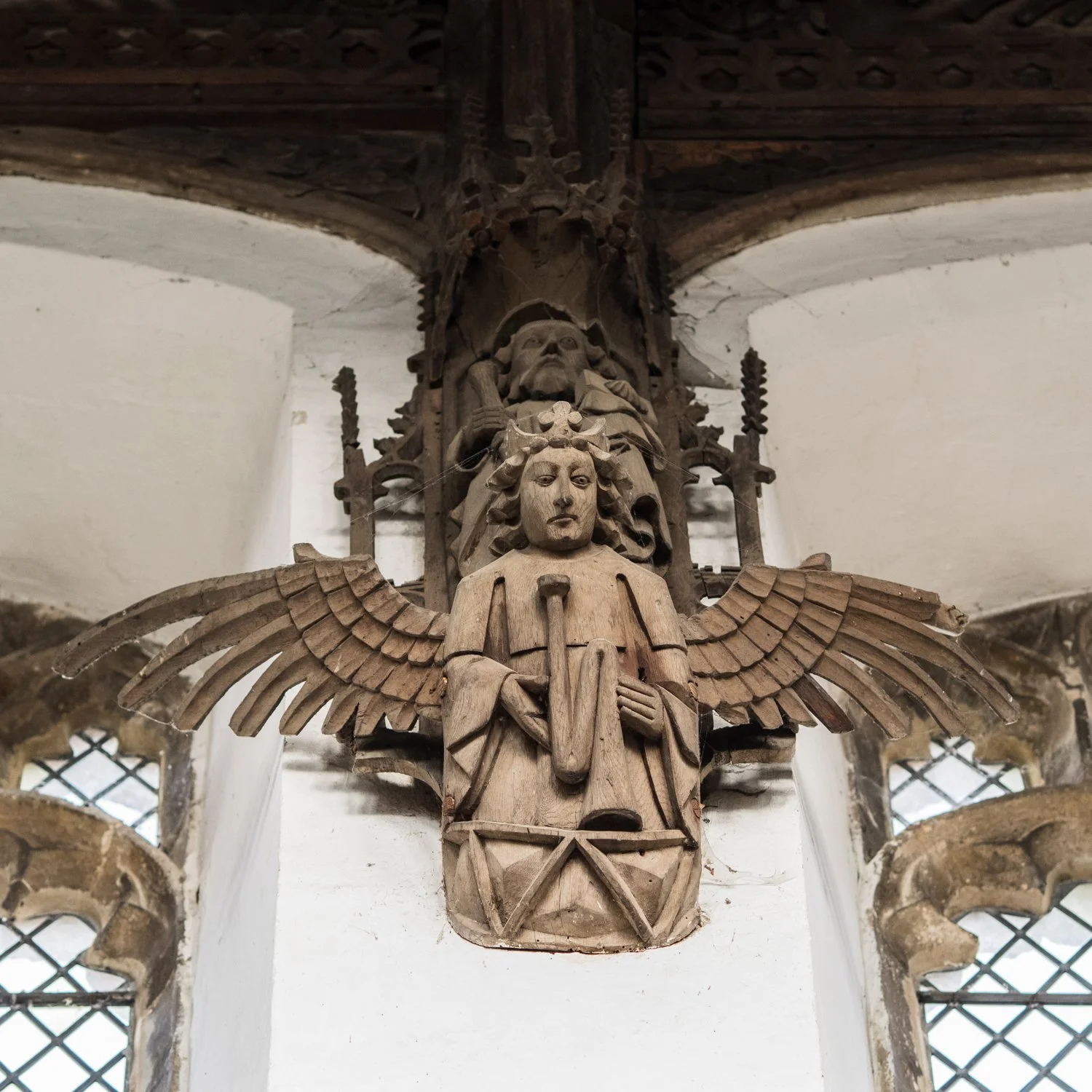 The moment I walked in and looked up, I wasn’t disappointed - what an astonishing roof! There were literally angels everywhere, all of them lovingly carved over 500 years ago. Between each of the side windows I found an angel holding a musical instrument - a detail I simply couldn’t ignore as a musician myself. You can click on any of the images to see them in greater detail.