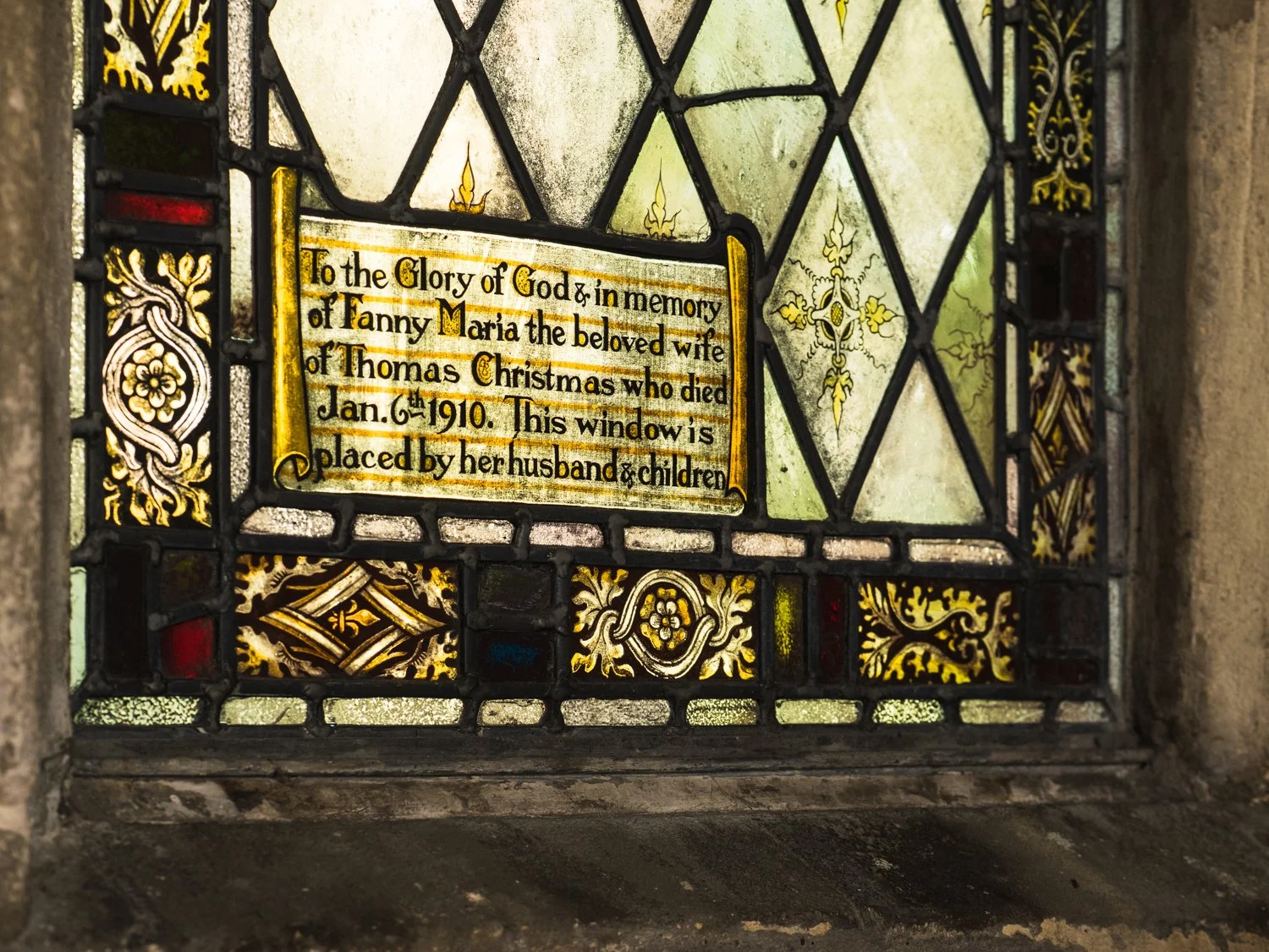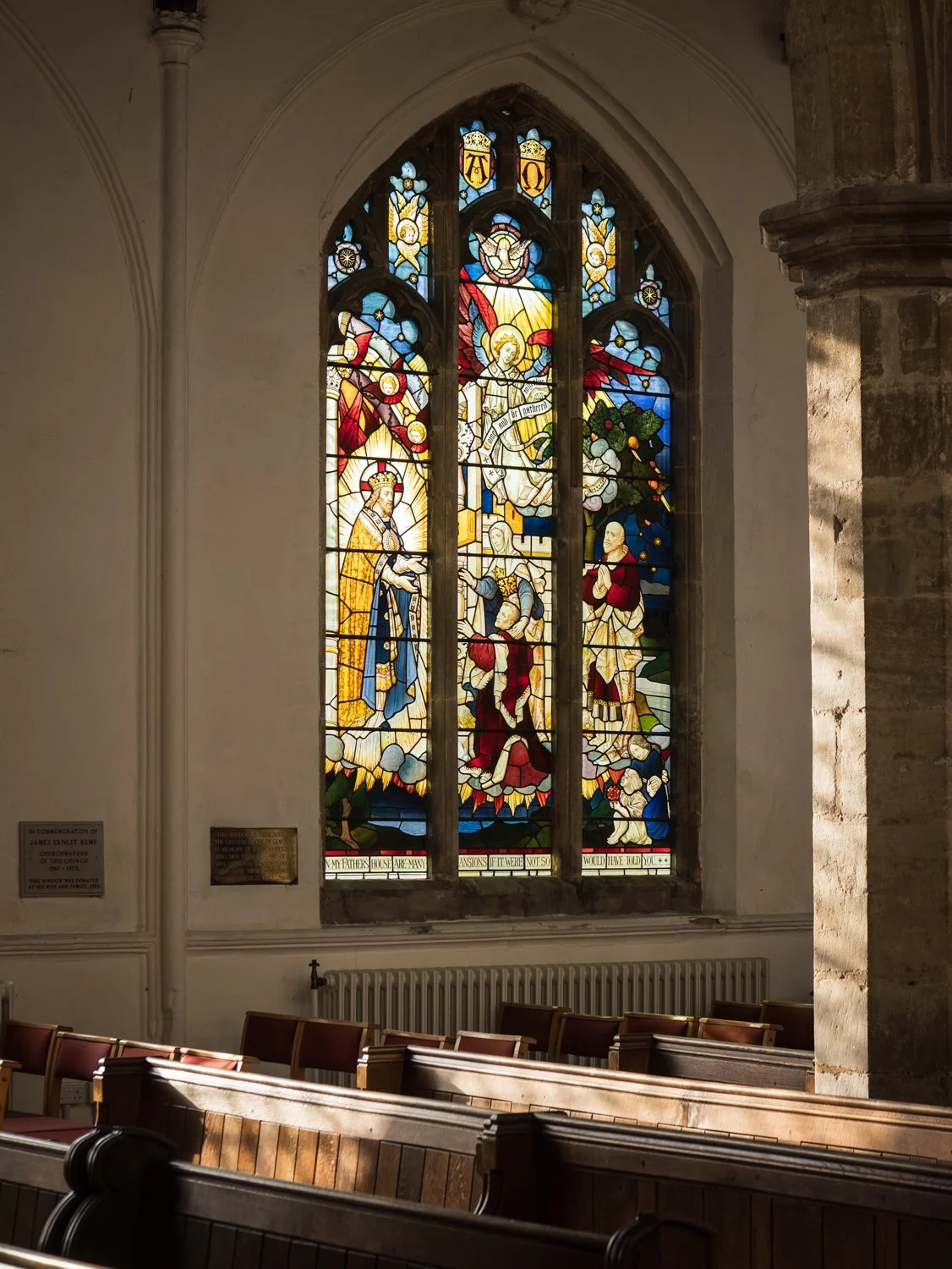 …and other details around the church - decoration on the choir stalls, old certificates, brass plaques and stained glass in memory of people long gone. Click on the images to see them enlarged.