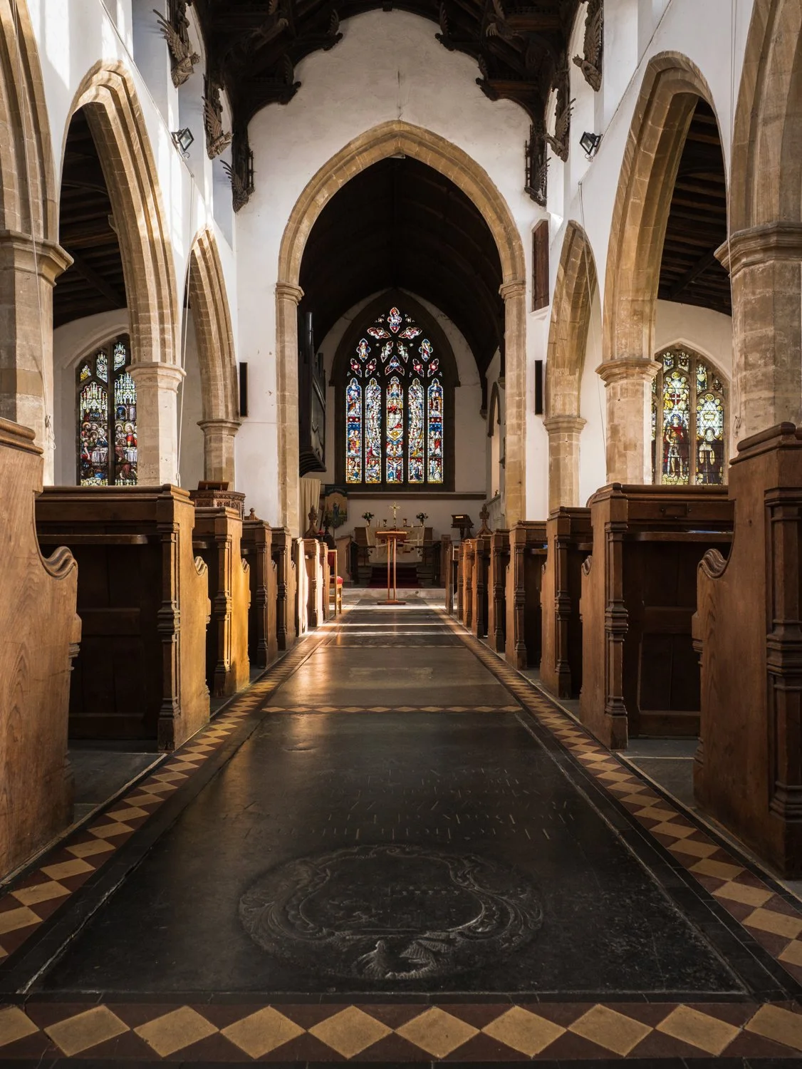 In a church where the roof is the star of the show, it’s easy to overlook a straight image of the nave, but that shaft of sunlight makes it special.